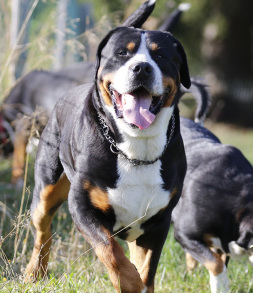 und zwei mittelgroße Rassen wie der Appenzeller und der Entlebucher Sennenhund,